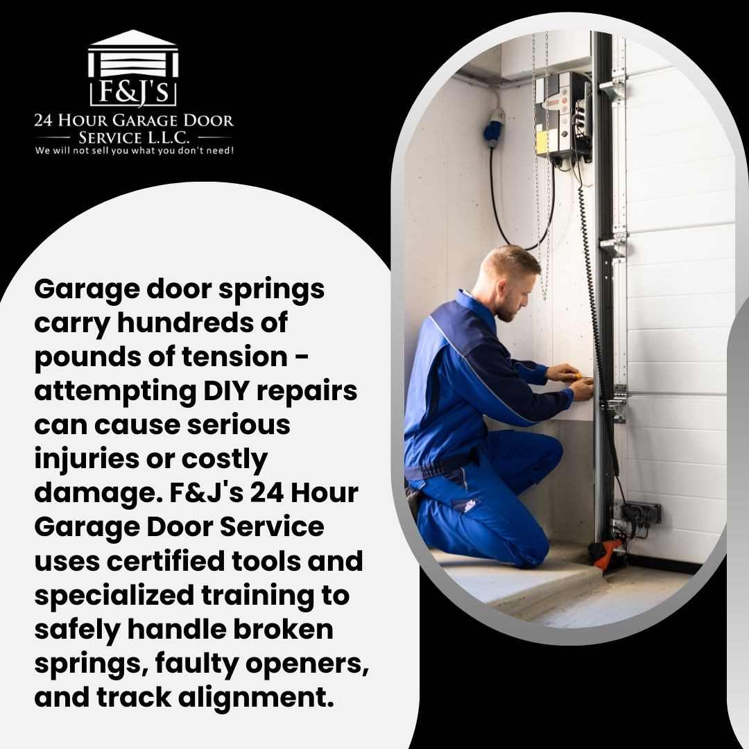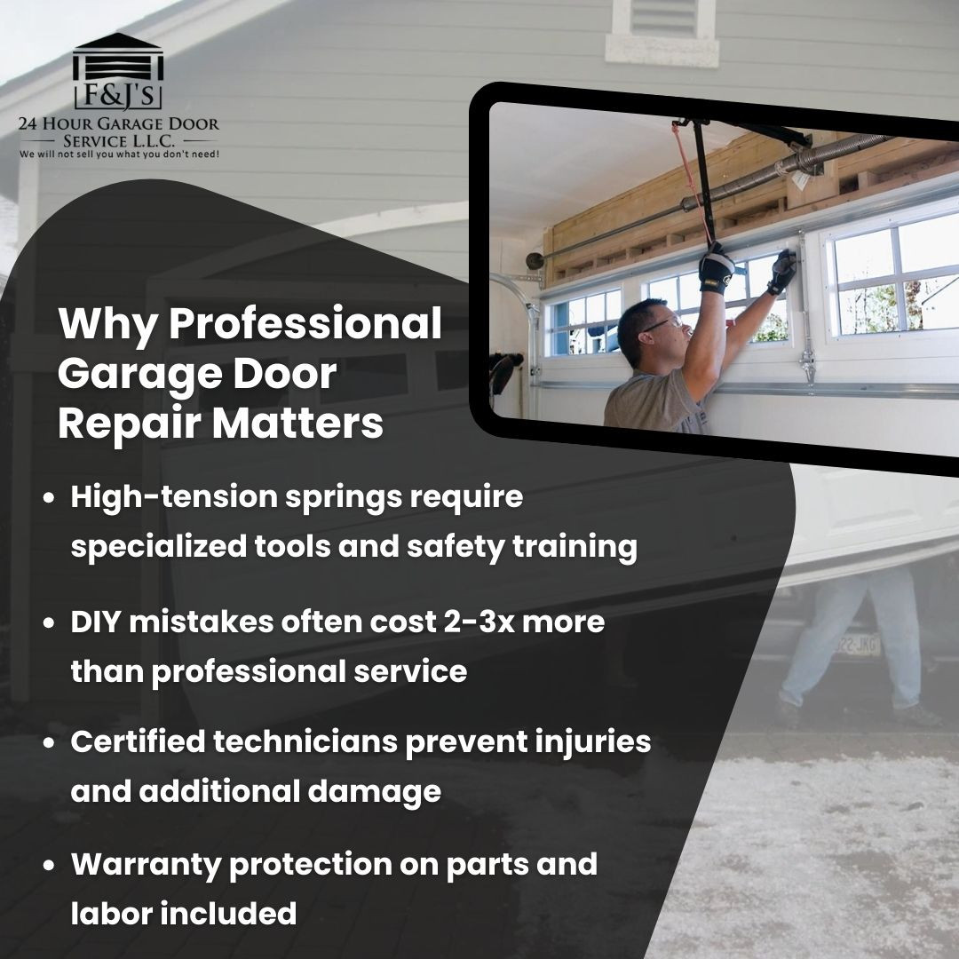 Garage doors are complex systems with heavy panels, tension-loaded springs, and precision mechanisms. Trying to fix these systems without proper knowledge can cause injuries and further damage.